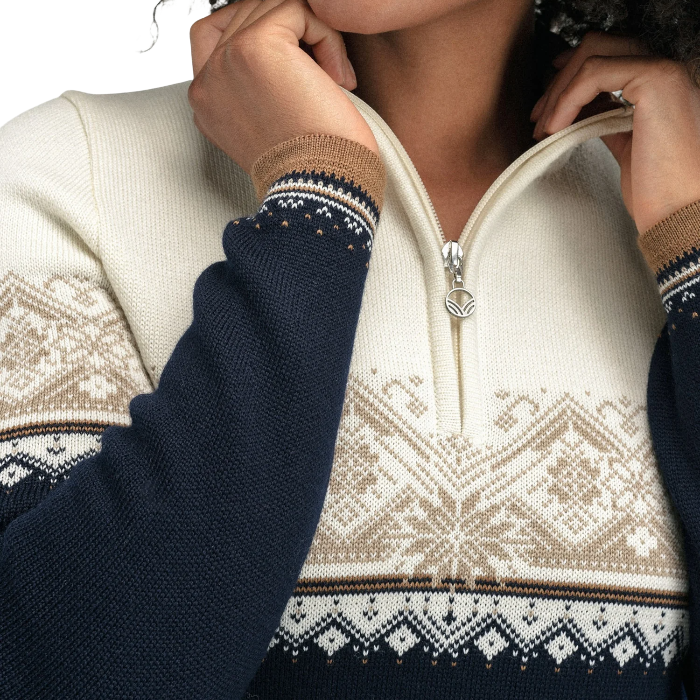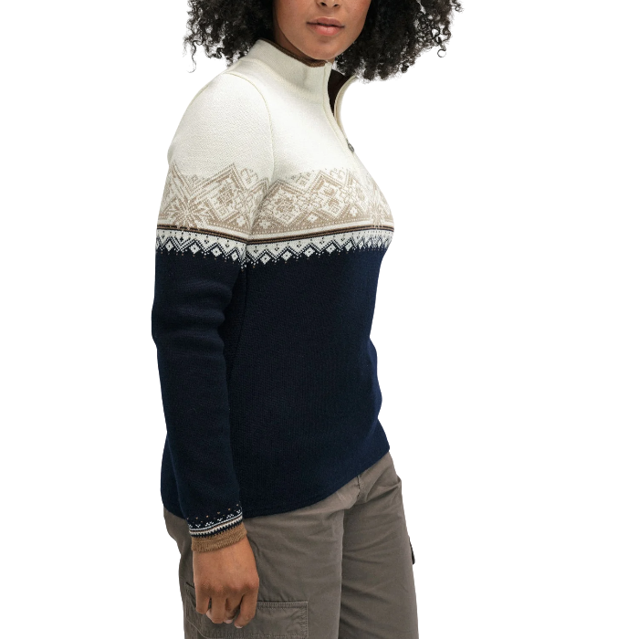 The Dale of Norway Women’s Moritz Sweater is a timeless piece, made from 100% skin-soft merino wool. The Moritz Sweater was inspired by the original design created for the 2003 Alpine World Ski Championships in St. Moritz.