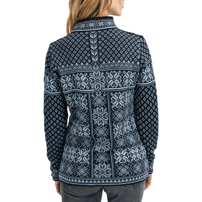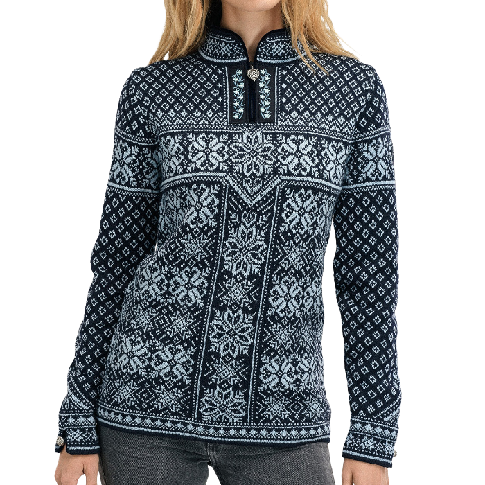 The Dale of Norway Women’s Peace Sweater is a refined blend of heritage design and modern comfort. Originally crafted for the 2006 Turin Winter Olympics, this sweater features the iconic eight-petal rose pattern, symbolizing the Olympic concept of peace.