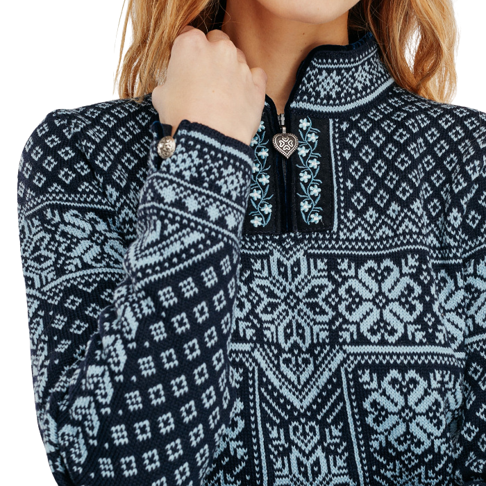 - Elegant Design: Features a quarter-zip with a Norwegian-made pewter heart puller and decorative pewter buttons on the sleeves.