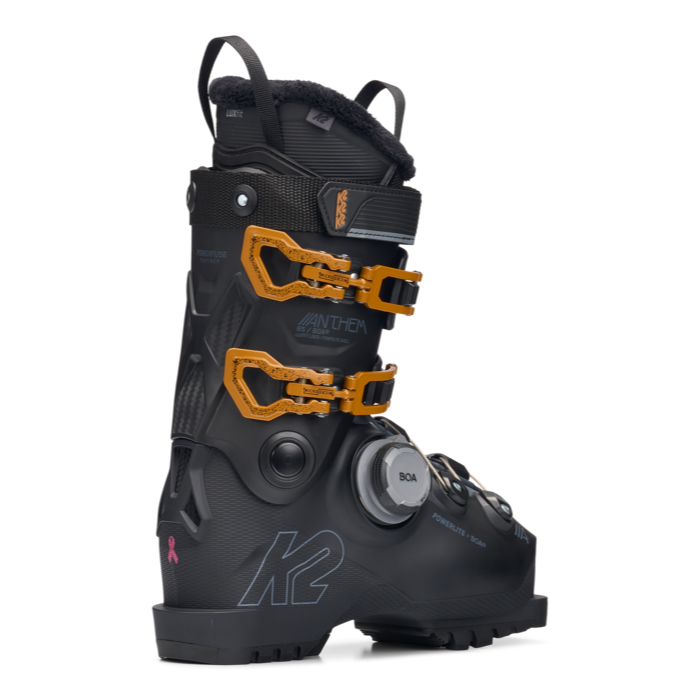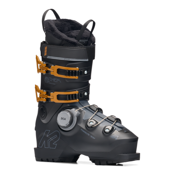 The K2 Anthem 85 MV Ski Boots feature many of the same design elements of the stiffer Anthem boots in a less aggressive flex for lighter or newer skiers. The Anthem 85 has the customizable features seen on stiffer women’s boots, like a heat moldable Powerlite Shell and GripWalk outsoles, but with a much more accommodating fit and feel.