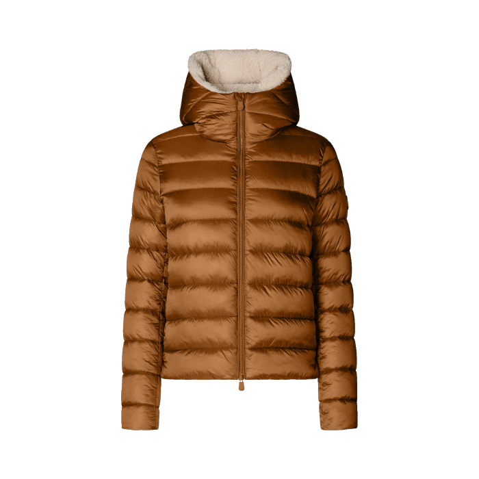 The Save the Duck USA Women’s Gretel Jacket is a water-resistant puffer designed with eco-conscious insulation and a soft shearling-style lining to keep you warm, dry, and stylish all season long. Whether you’re commuting, traveling, or heading outdoors, this hooded jacket delivers reliable warmth and style with zero compromise on ethics or comfort.